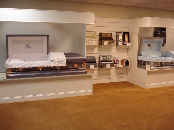 Our selection room is the epitome of the future of funeral service. Instead of bombarding you with a room full of caskets, we provide a less stressful environment of some full caskets. Then, we show wall mount cuts of others that can easily obtained. If you are still looking for something that we don't show, we have up-to-date books and computer accessibility to get various looks and price ranges from our suppliers that can possibly be delivered the same day or next day service. The selection room also provides our vaults, urns, clothing, and other accessory items to give this difficult experience more meaning."